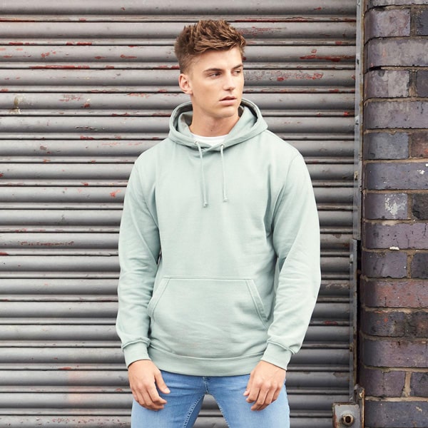 Felpa con cappuccio a doppio strato, maniche set-in, tasca a marsupio, struttura con cuciture laterali. Cuciture doppie, cordoncini tono su tono, polsini e orlo a costine. Etichetta tear-away ideale per il rebranding. Tessuto morbido sul davanti per una superficie di stampa ideale. Felpata internamente.