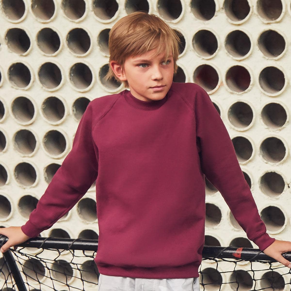 Felpe Bimbo Manica Raglan Fruit of The Loom 620390 Classica con collo tondo (girocollo) e manica raglan. Fettuccia da spalla a spalla in jersey. Felpata Internamente.