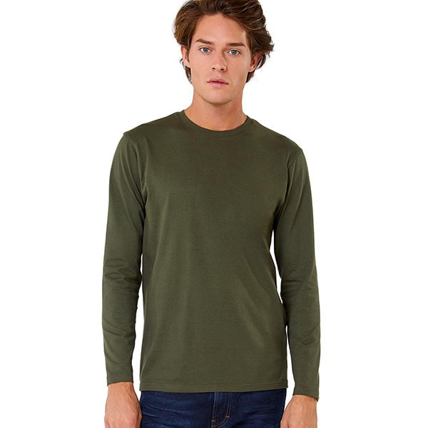 T-shirt a manica lunga con struttura tubulare, collo a costina sottile, etichetta satinata, superficie ideale per la stampa.