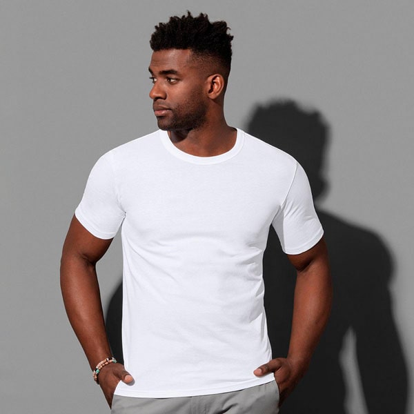T-shirt manica corta girocollo con orlo a costine, struttura con cuciture laterali, etichetta strappabile, lavabile a 40°C. Col.